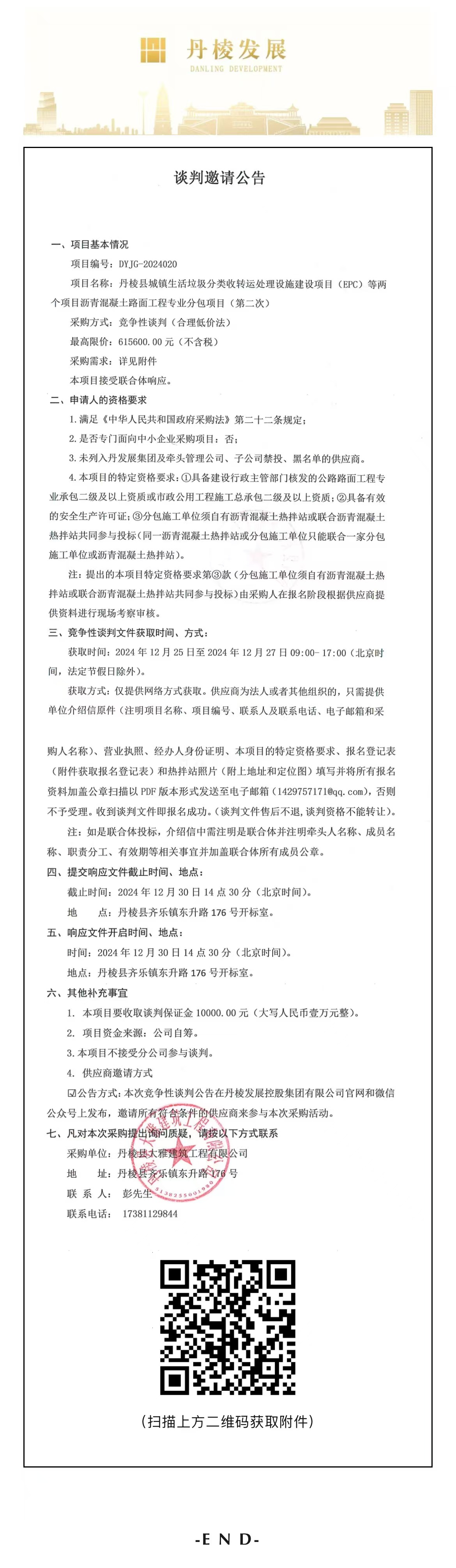 丹棱縣城鎮(zhèn)生活垃圾分類收轉運處理設施建設項目(EPC)等兩個項目瀝青混凝土路面工程專業(yè)分包項目(第二次)談判邀請公告