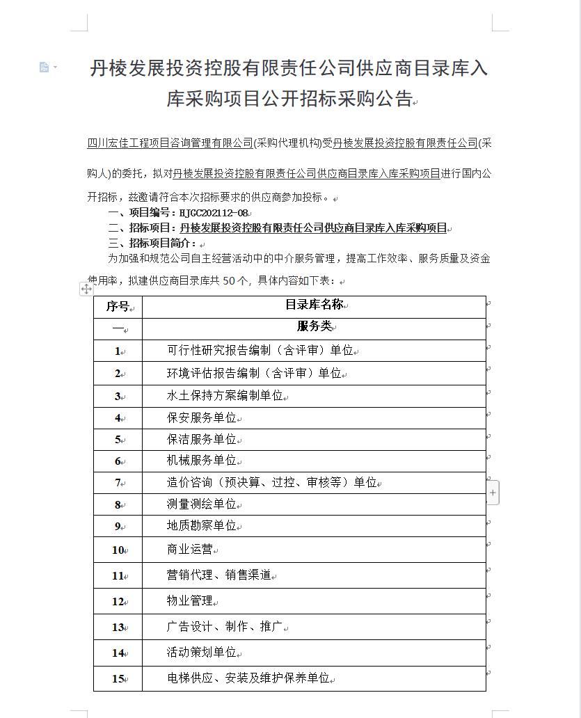 【丹發(fā)展公司】丹棱發(fā)展投資控股有限責(zé)任公司供應(yīng)商目錄庫(kù)入庫(kù)采購(gòu)項(xiàng)目公開(kāi)招標(biāo)采購(gòu)公告