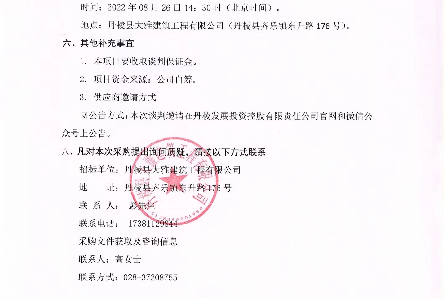 丹棱縣熊河碥片區(qū)市政基礎(chǔ)設(shè)施建設(shè)項目一期(城市雙修)設(shè)計施工總承包(EPC)衛(wèi)生間幕墻專業(yè)分包項目談判邀請公告
