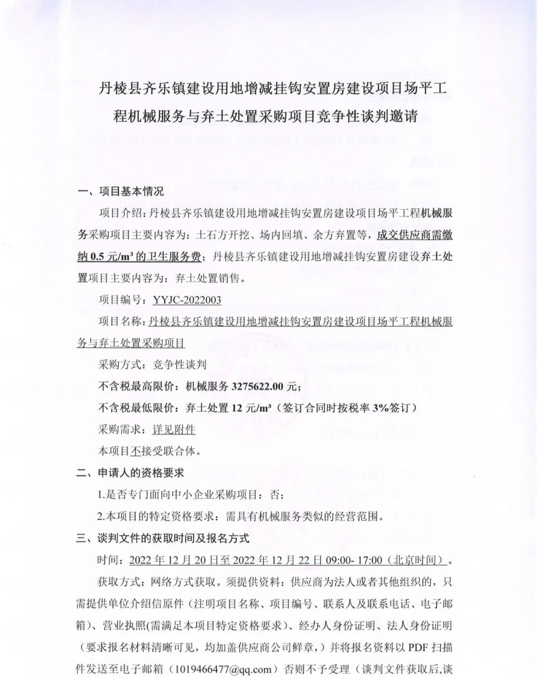 丹棱縣齊樂鎮(zhèn)建設(shè)用地增減掛鉤安置房建設(shè)項(xiàng)目場平工程機(jī)械服務(wù)與棄土處置采購項(xiàng)目競爭性談判邀請(qǐng)