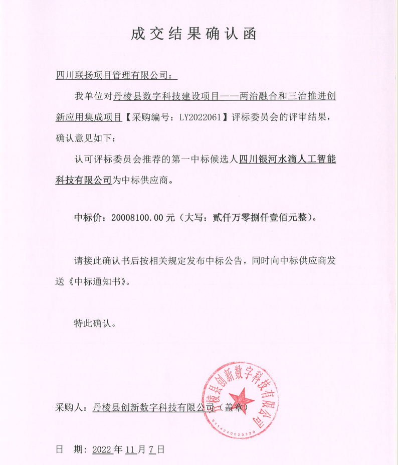丹棱縣數(shù)字科技建設(shè)項(xiàng)目—兩治融合和三治推進(jìn)創(chuàng)新應(yīng)用集成項(xiàng)目成交公告