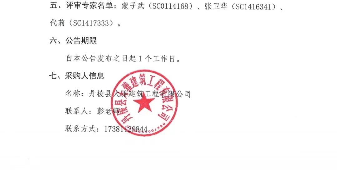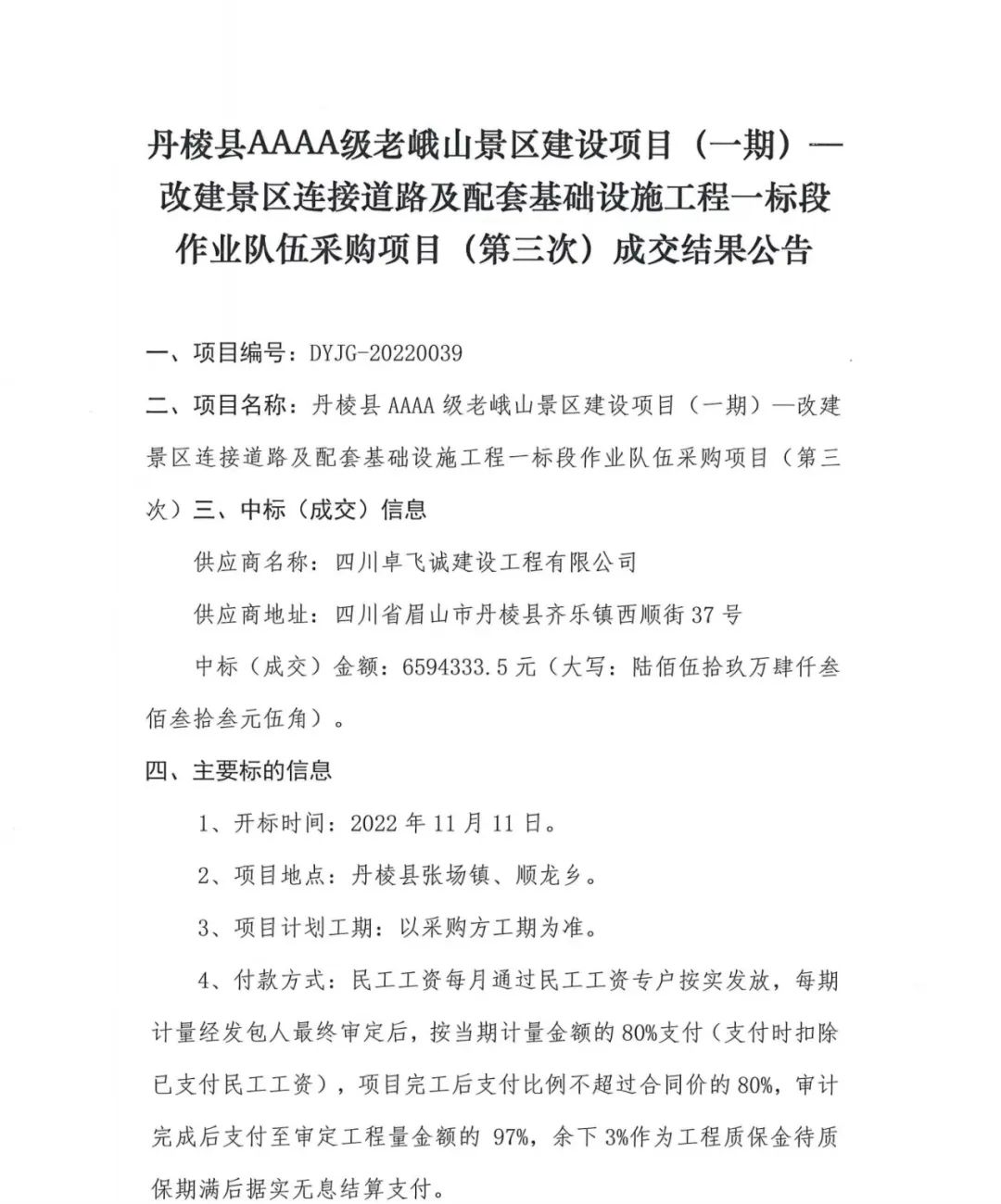 丹棱縣AAAA級老峨山景區(qū)建設項目 (一期)-改建景區(qū)連接道路及配套基礎設施工程一標段作業(yè)隊伍采購項目 (第三次) 成交結(jié)果公告