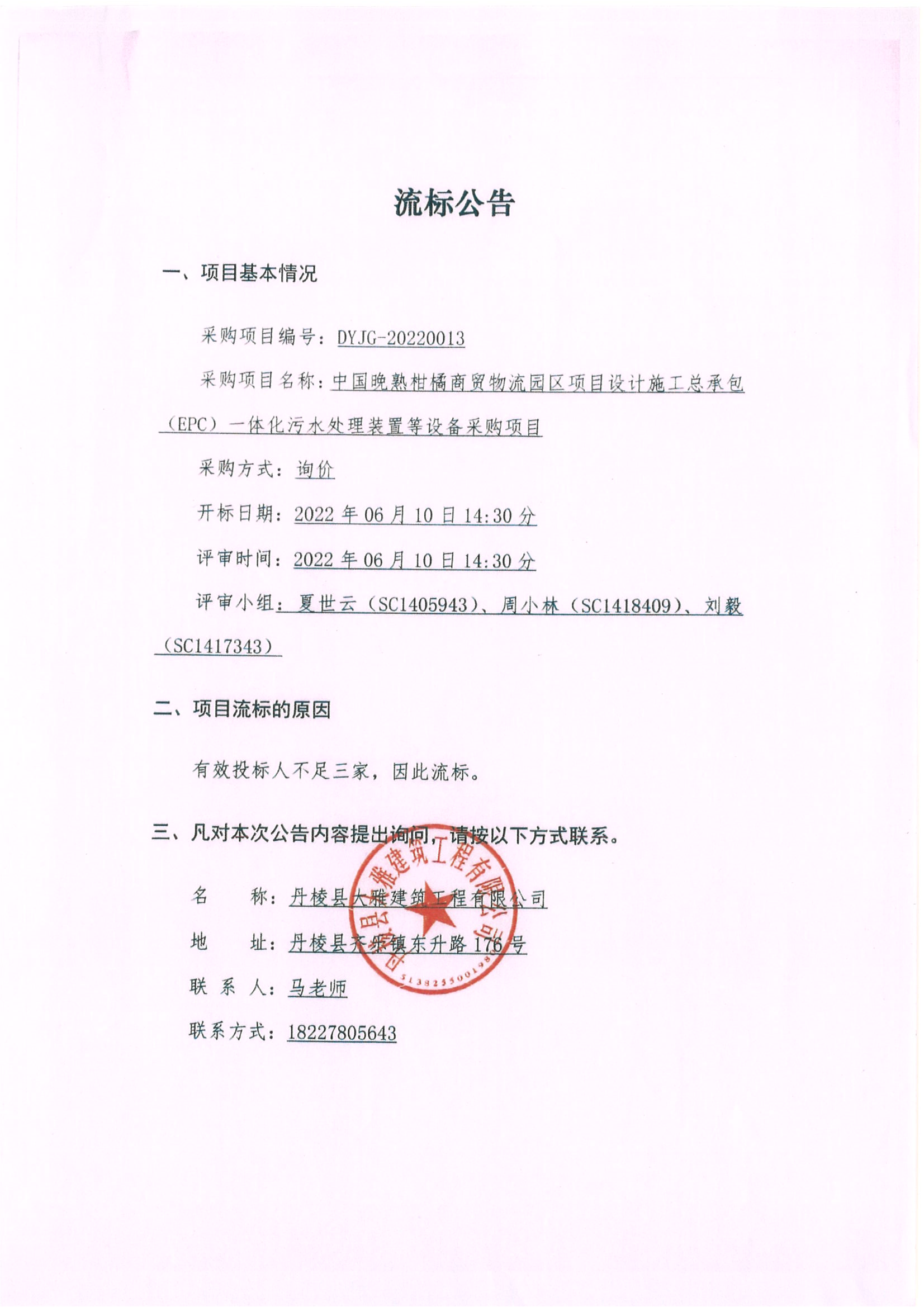 中國(guó)晚熟柑橘商貿(mào)物流園區(qū)項(xiàng)目設(shè)計(jì)施工總承包(EPC)一體化污水處理裝置等設(shè)備采購(gòu)項(xiàng)目流標(biāo)公告