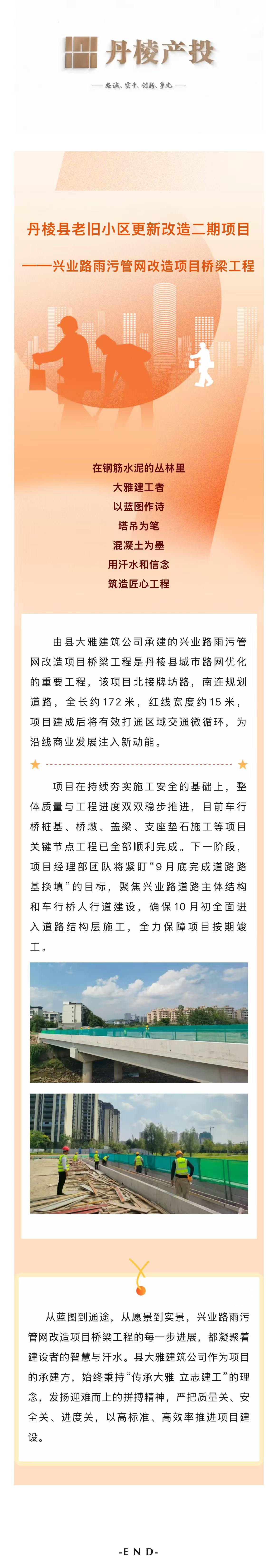 【縣大雅建筑公司】丹棱縣老舊小區(qū)更新改造二期項(xiàng)目—興業(yè)路雨污管網(wǎng)改造項(xiàng)目橋梁工程全力推進(jìn)中